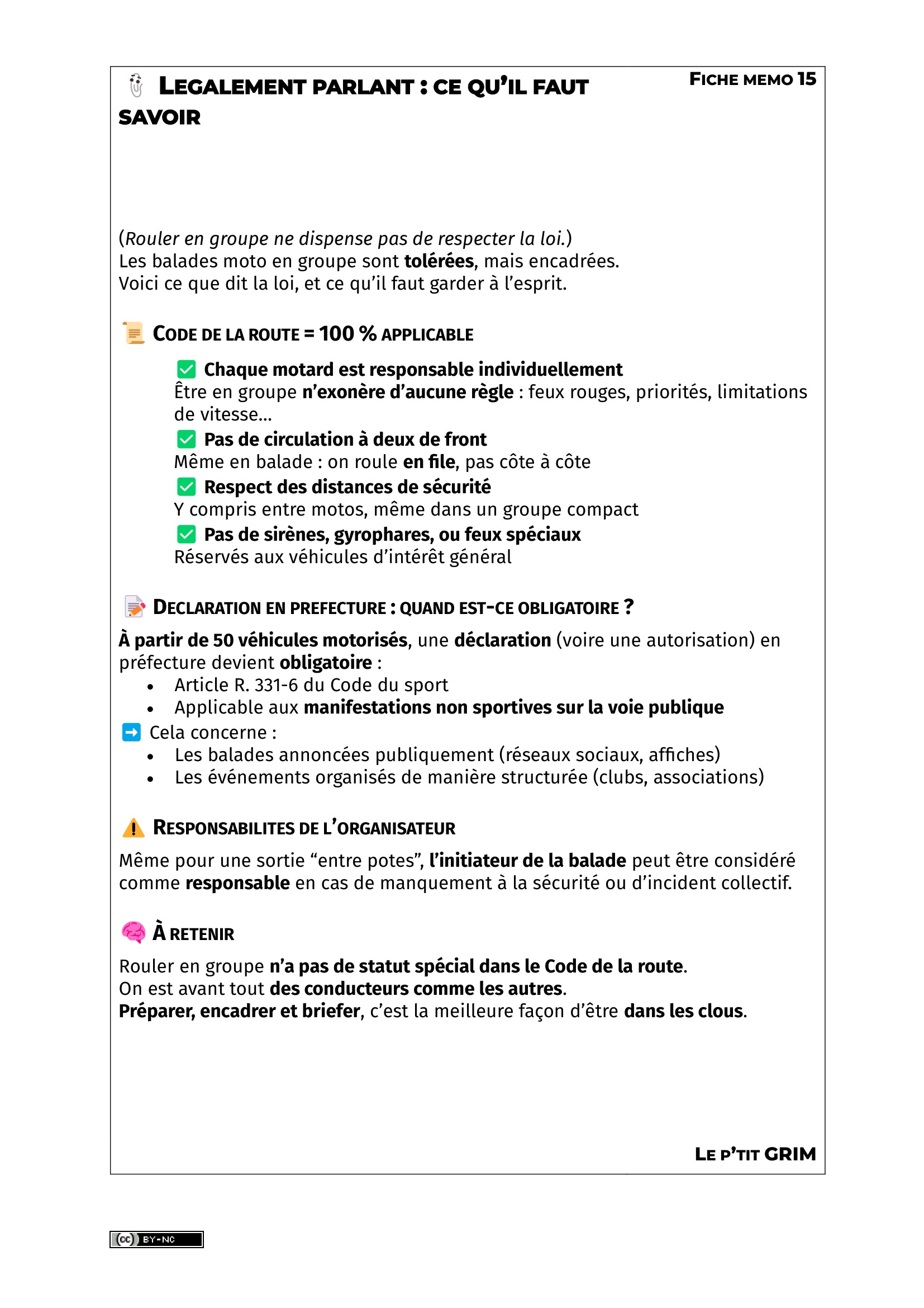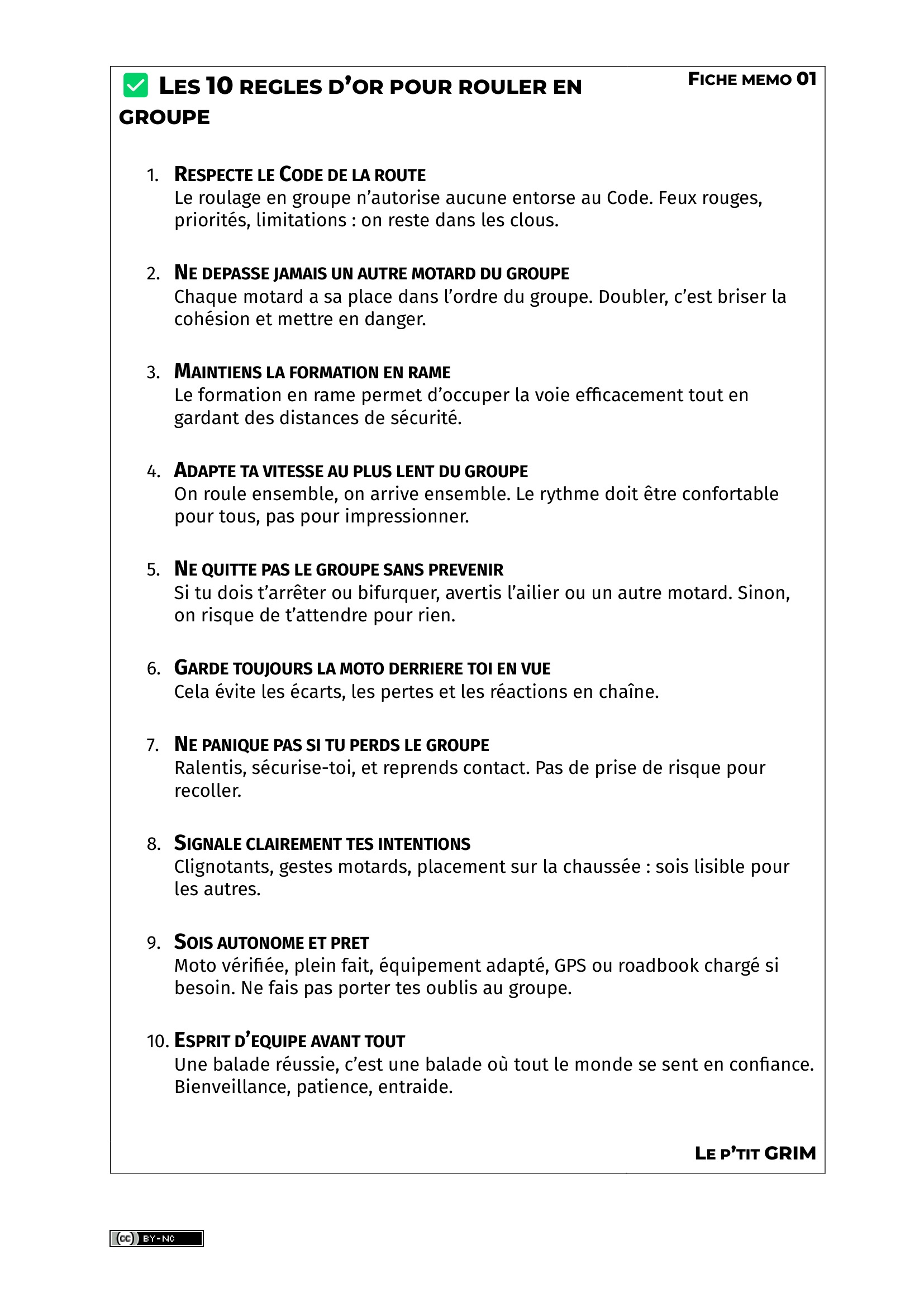 L ES 10 REGLES D ’ OR POUR ROULER EN GROUPE