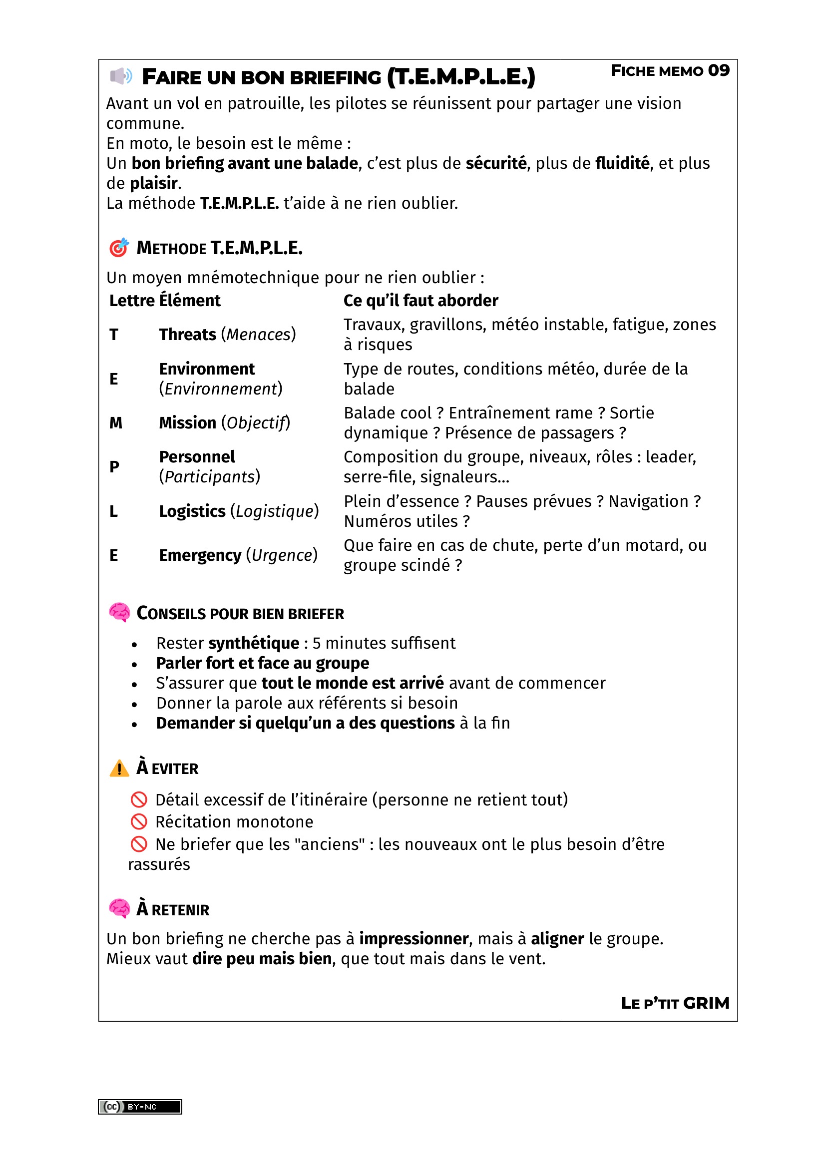 À EVITER ABSOLUMENT COMPORTEMENTS DANGEREUXF AIRE UN BON BRIEFING (T.E.M.P.L.E.)