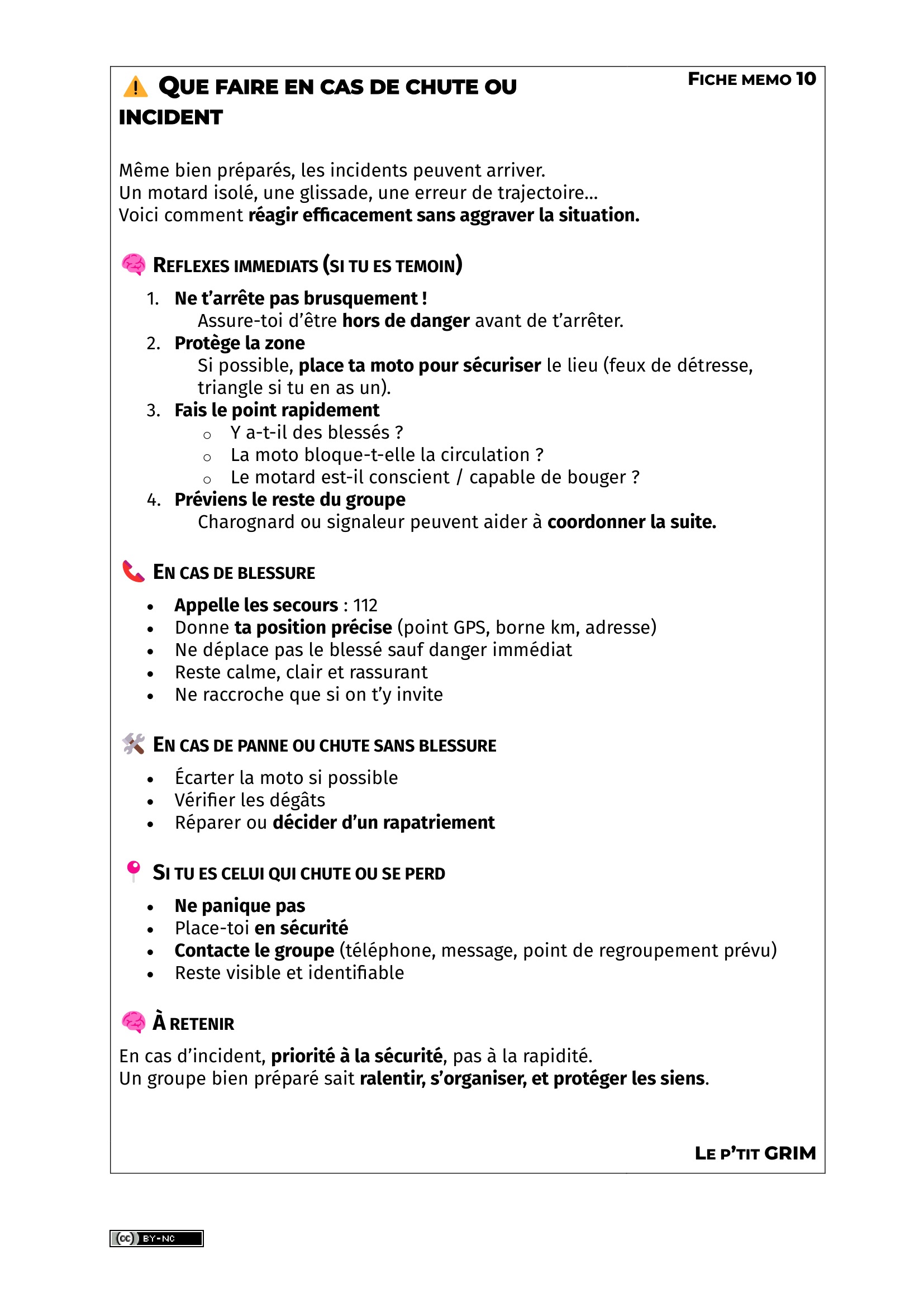 Q UE FAIRE EN CAS DE CHUTE OU INCIDENTL E JALONNEMENT EN BALADE MOTO