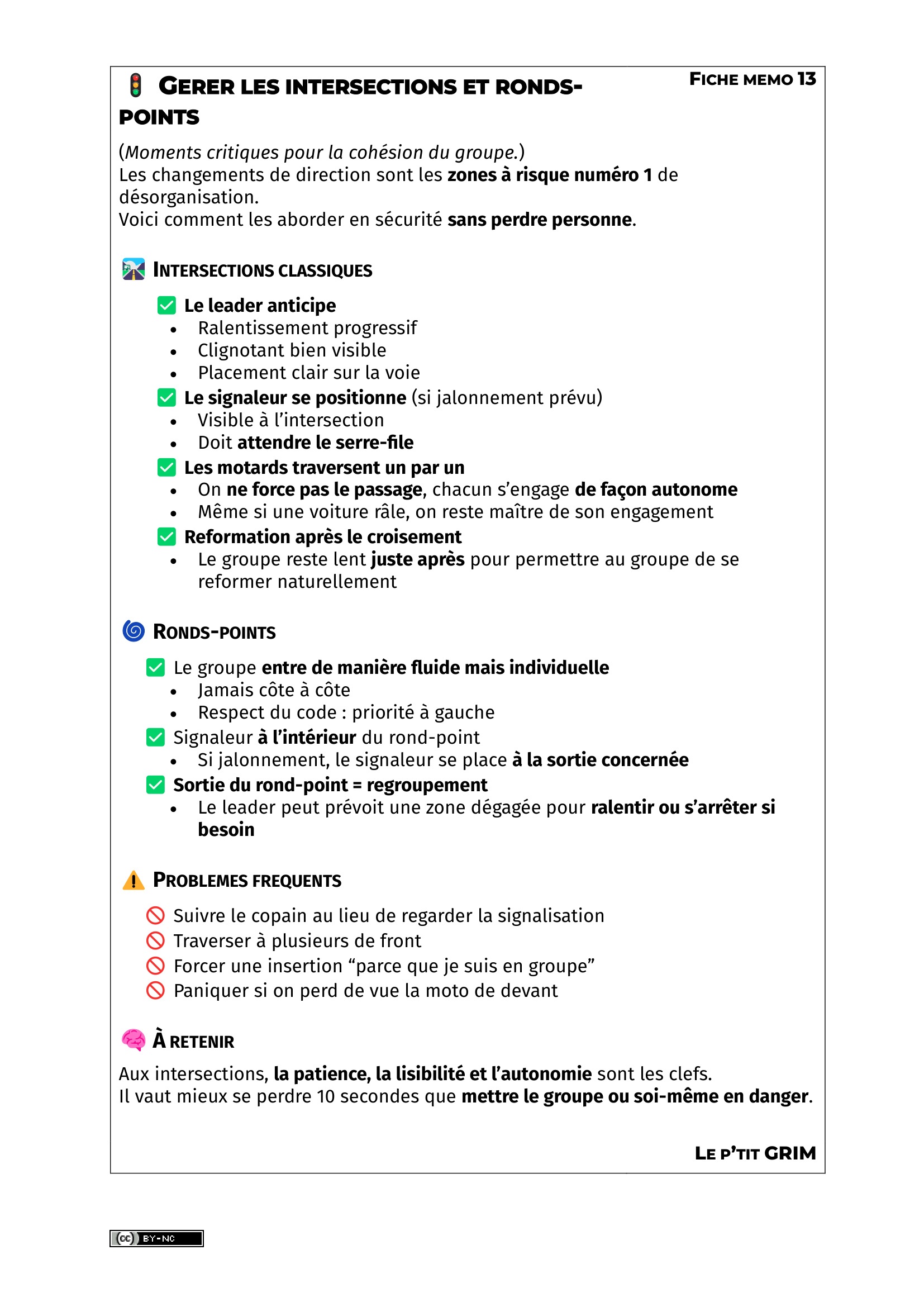 C HECK SECURITE AVANT LE DEPARTG ERER LES INTERSECTIONS ET RONDS - POINTS